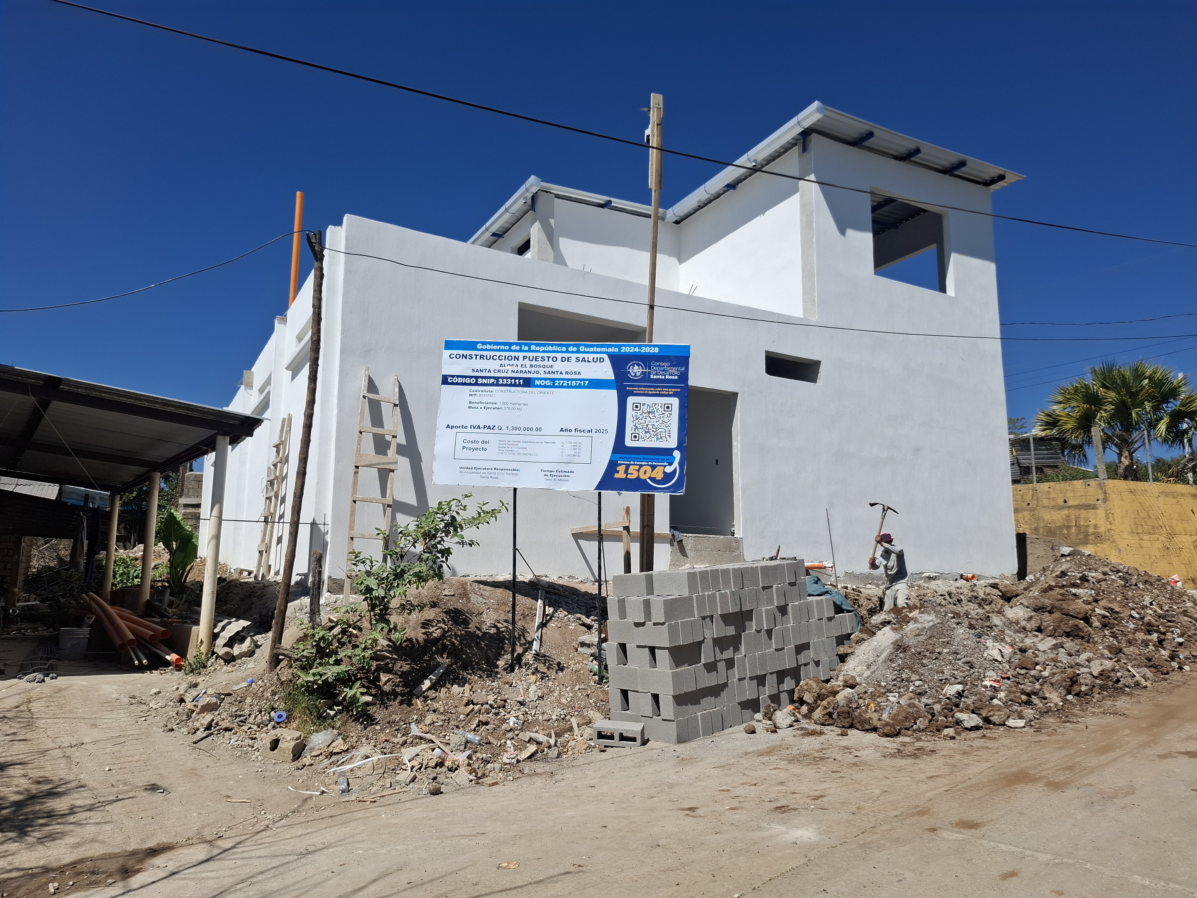En cumplimiento de las políticas e instrucciones del señor Presidente de la República, Dr. Bernardo Arévalo de León, en coordinación con la Secretaría de Coordinación Ejecutiva de la Presidencia -SCEP-, el Consejo Departamental de Desarrollo -CODEDE, de Santa Rosa, y la municipalidad de Santa Cruz Naranjo, se llevó a cabo la supervisión del proyecto "CONSTRUCCION PUESTO DE SALUD ALDEA EL BOSQUE SANTA CRUZ NARANJO, SANTA ROSA”, con SNIP: 333111.
